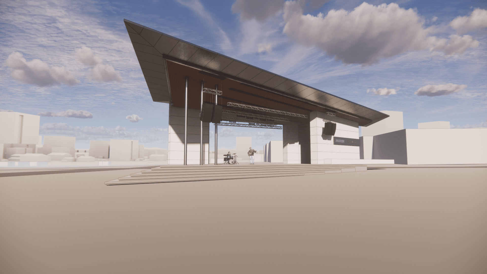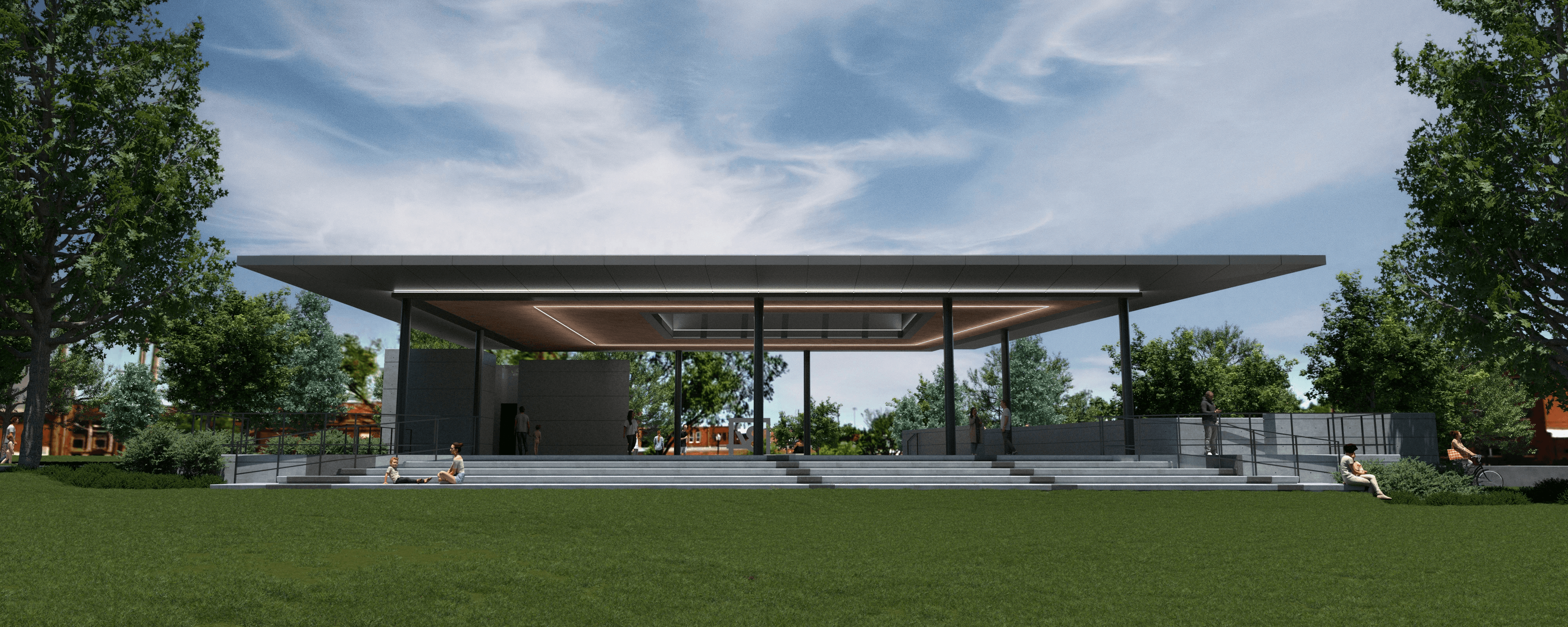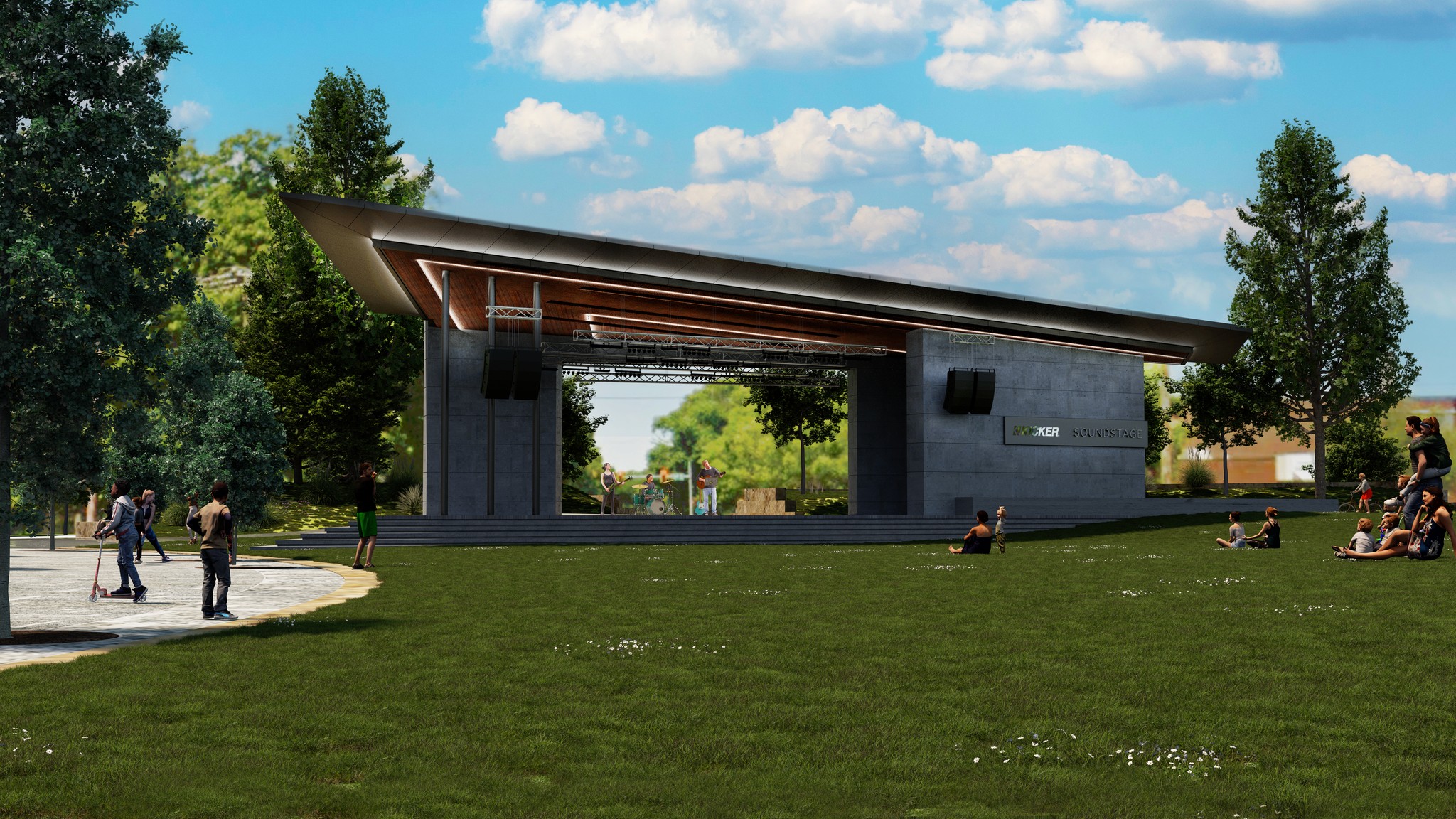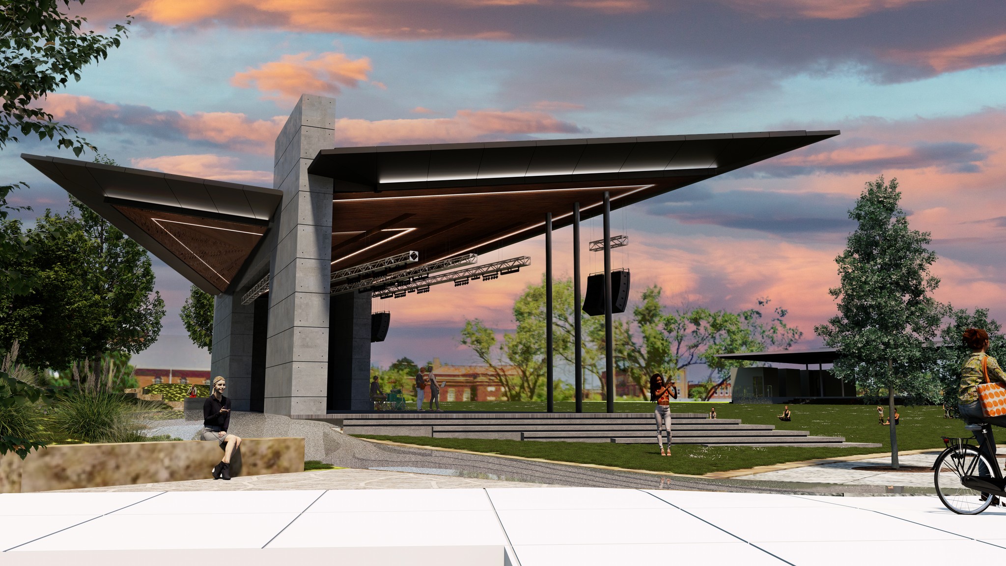 Block 34🔗, a civic park at downtown’s edge, hosts public events while strengthening community identity. Centered on family and music, it balances open lawns, shaded seating, and playful spaces. Features include a performance stage, covered pavilion, music-themed playground, interactive water feature, and a Walk of Fame honoring local musicians.