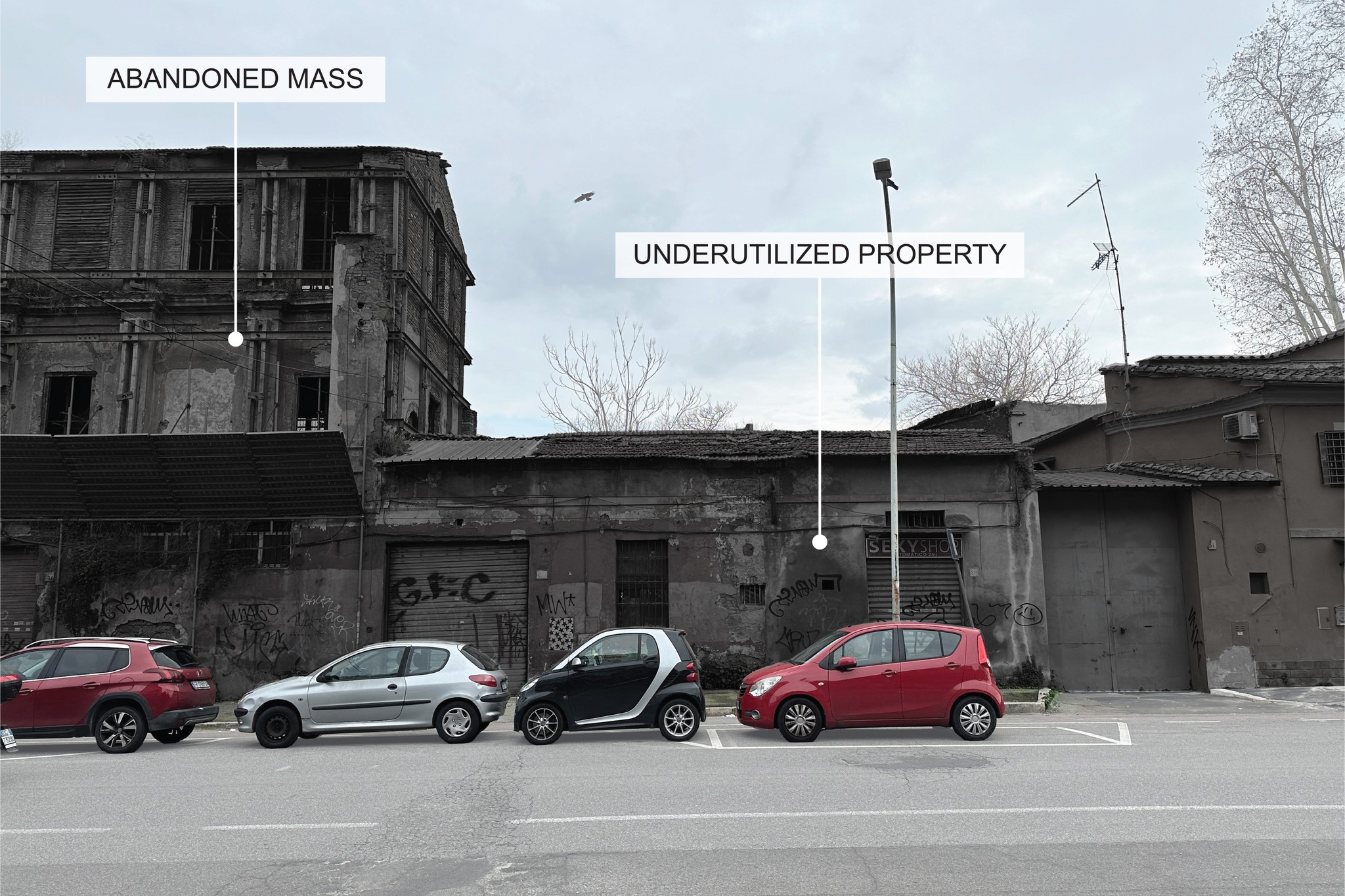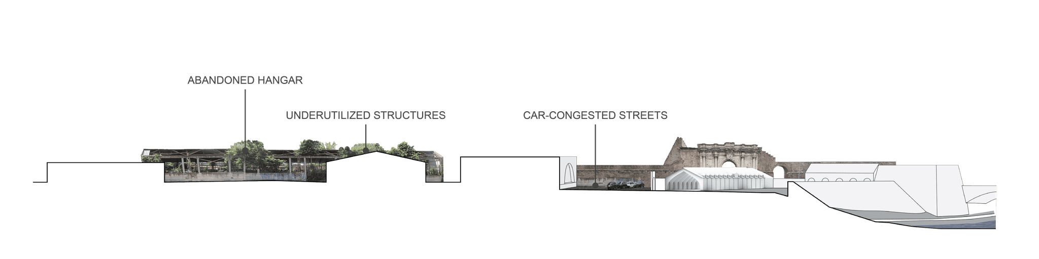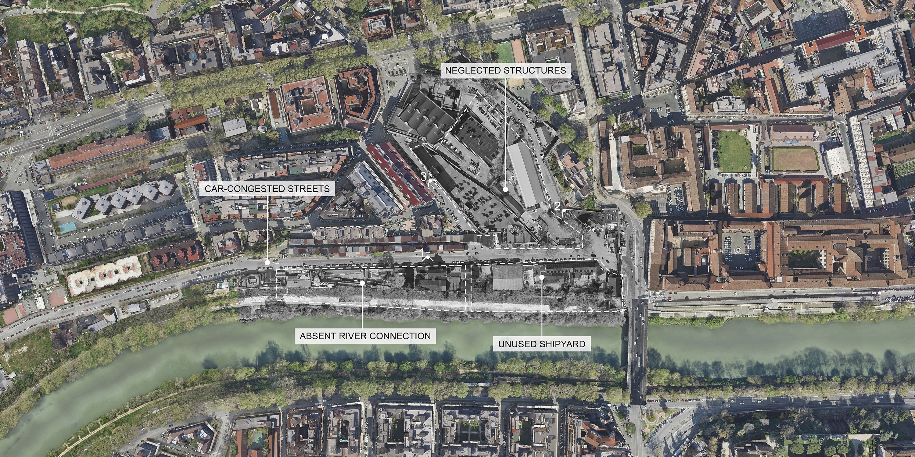 Porta Portese has lost its identity as the heart of maritime on the Tiber River, once the nexus of commerce, the military economy, and navigation of the city’s waterway. A pending project to reclaim shipbuilding structures for the new Quadriennale di Roma base remains isolated at the edge of the degraded urban district.