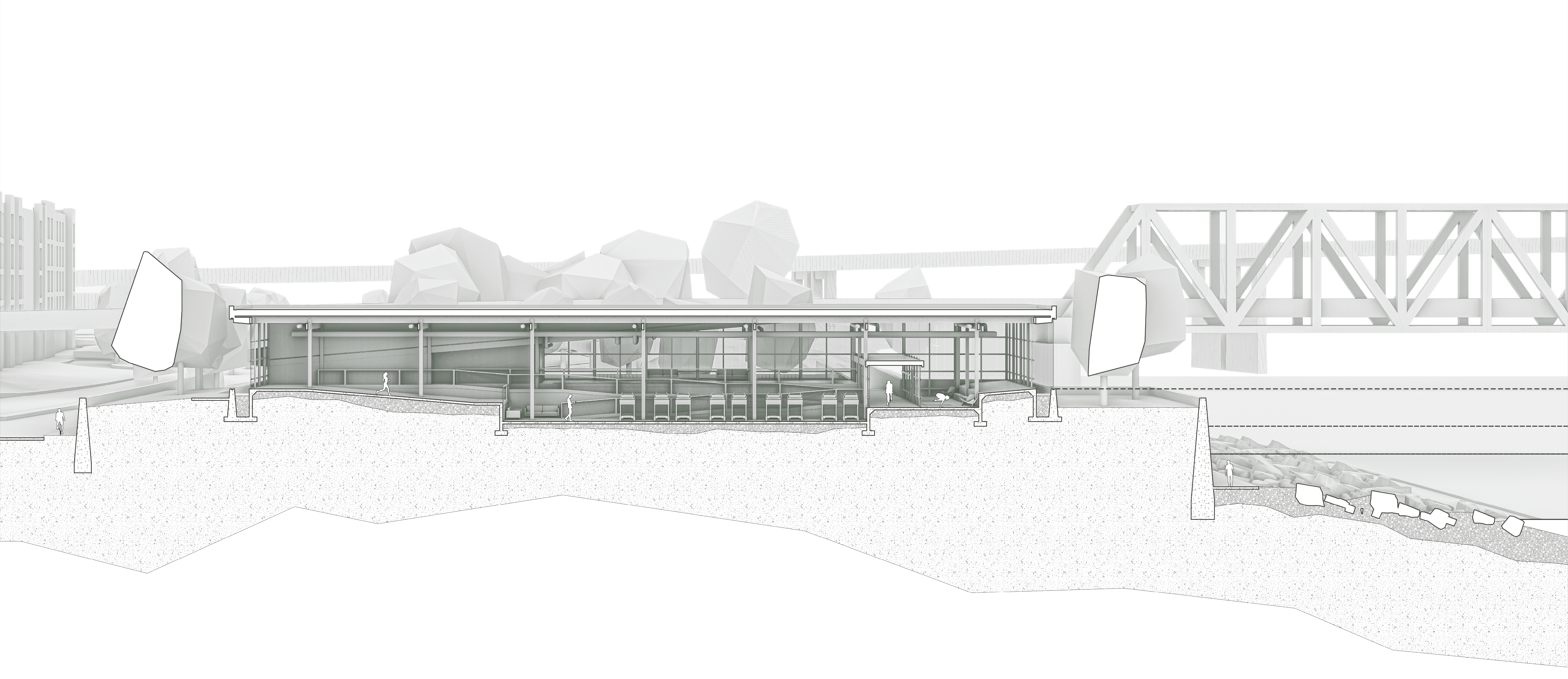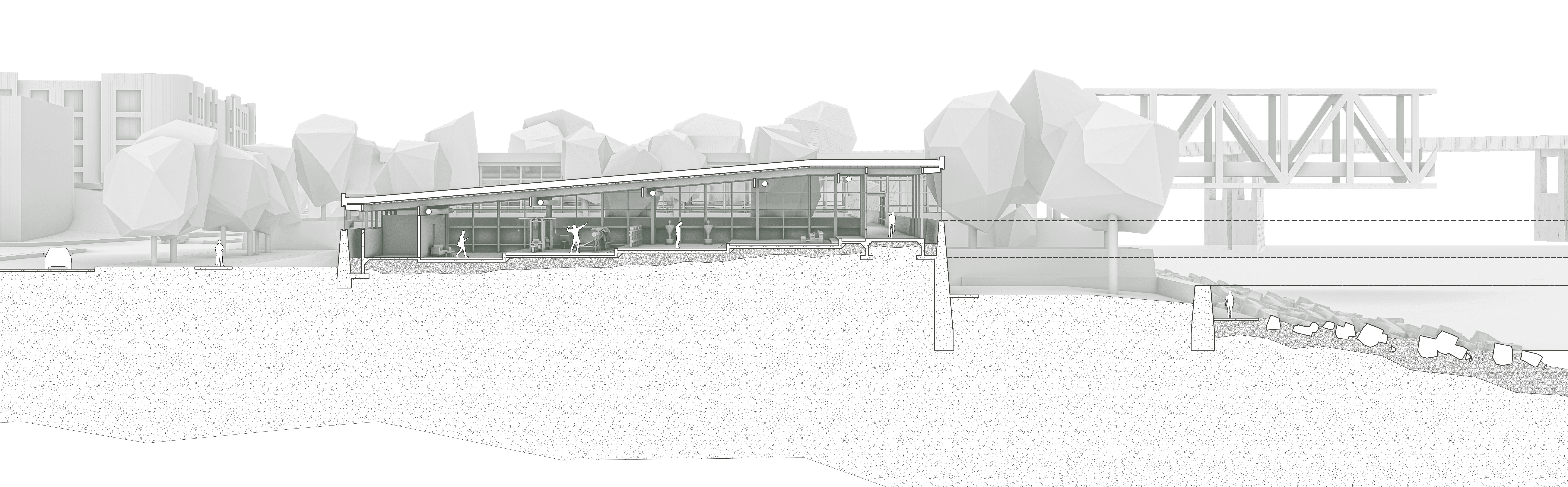 The central concept of NEST solidarity; buildings nested within the floodplain landscape, programs nested within adaptable typologies, and athletic intensity nested within cycles of exertion and recovery. The facilities are fixed in their placement yet open in their interpretation, allowing the site’s environmental systems to play a defining role in shaping experience.