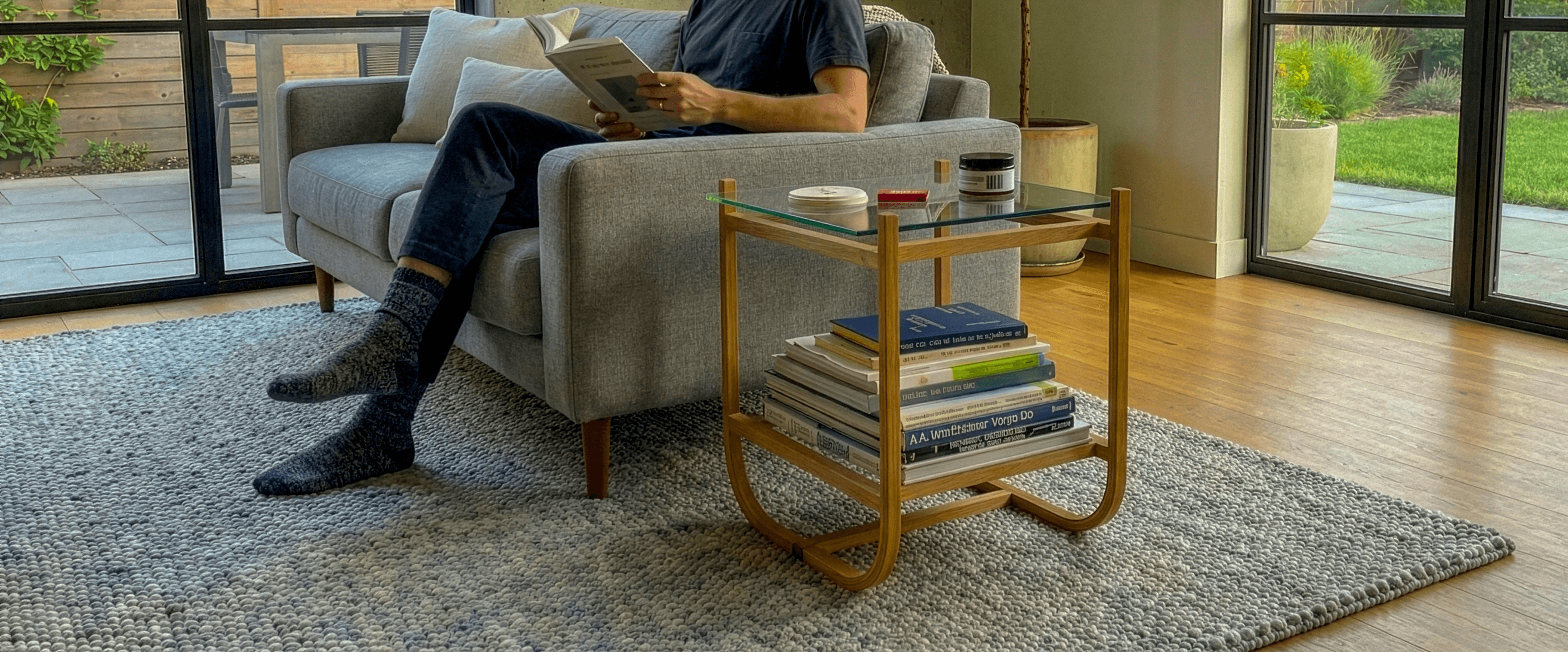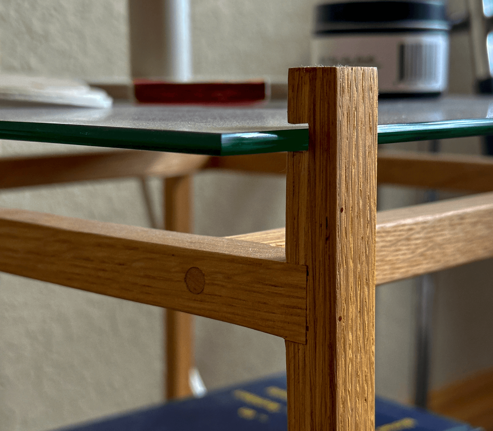 The table shown here developed from white oak offcuts and a glass top sourced from a friend. It began as an attempt at record storage, driven by my own collecting habits and interest in display. As the piece progressed, material limits and spatial constraints made it clear that accommodating records would compromise the clarity of the form. Choosing to let go of that function became a defining moment in the process, allowing the table to exist for its presence rather than its utility. The final object reflects my interest in working intuitively, learning through adjustment, and recognizing when restraint strengthens a design.