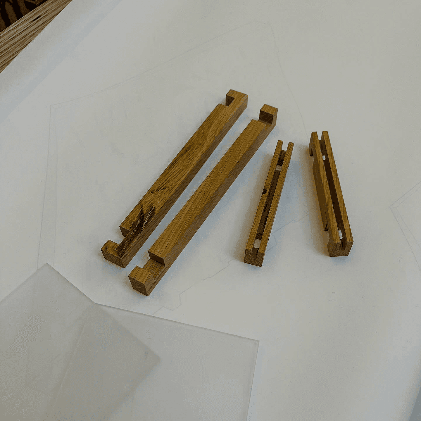 Working as staff in the Fay Jones School fabrication labs has sharpened both my craft and my ability to think flexibly within material constraints. These works emerged from short, self-initiated builds using offcuts and scrap white oak collected from the shop floor.