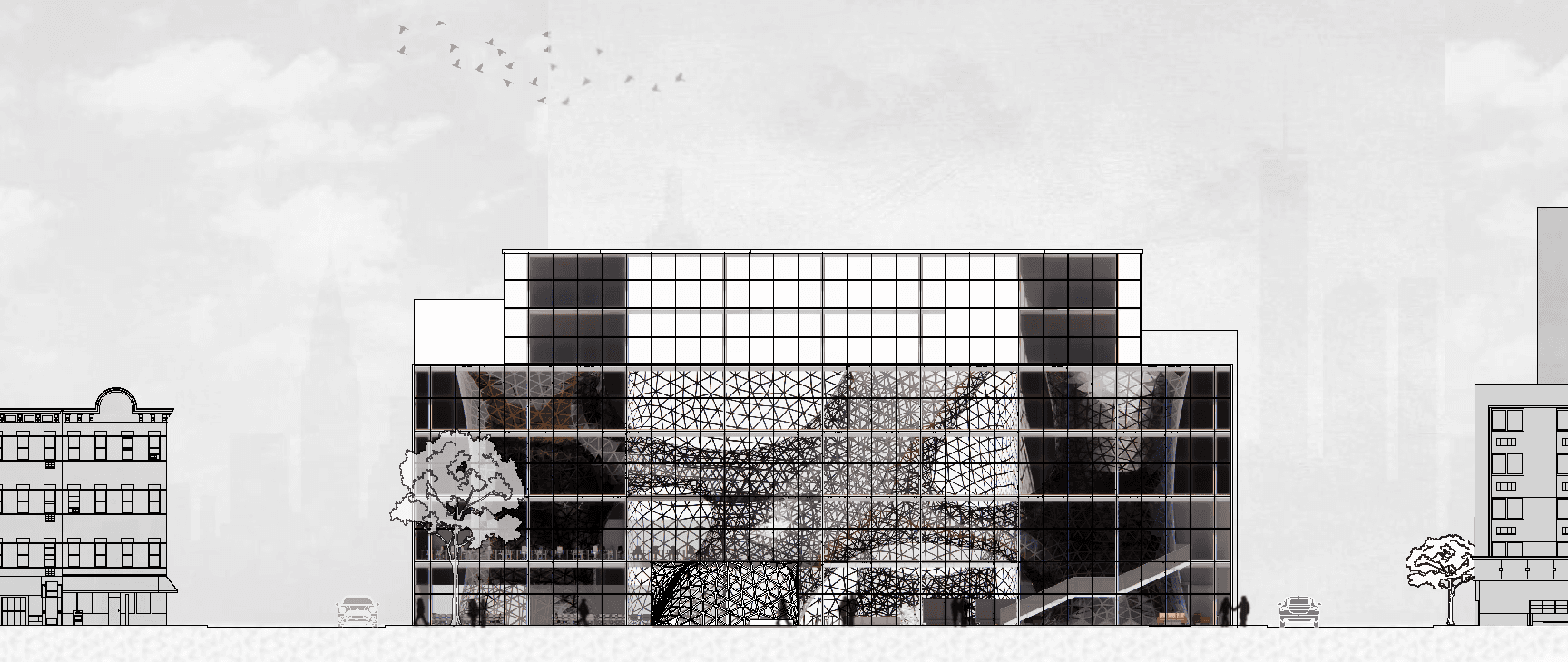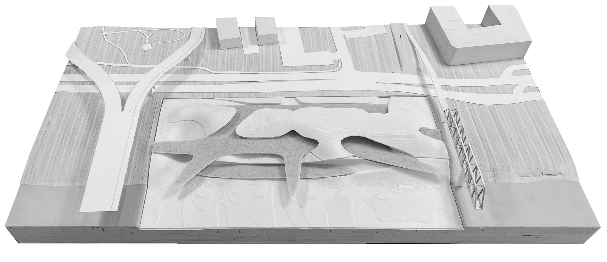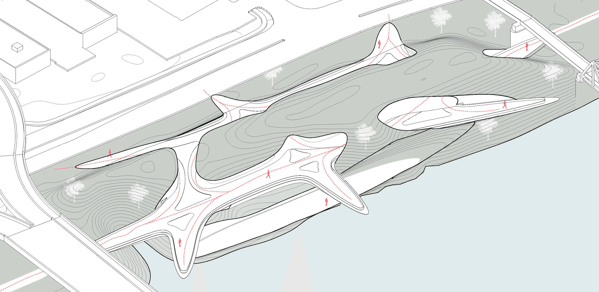 In early conceptual explorations throughout my academic career, parametric workflows were used to study fluid geometries in response to site and program. These projects did not advance beyond conceptual development and were explored visually through generative AI and model making, following the established geometric logic.